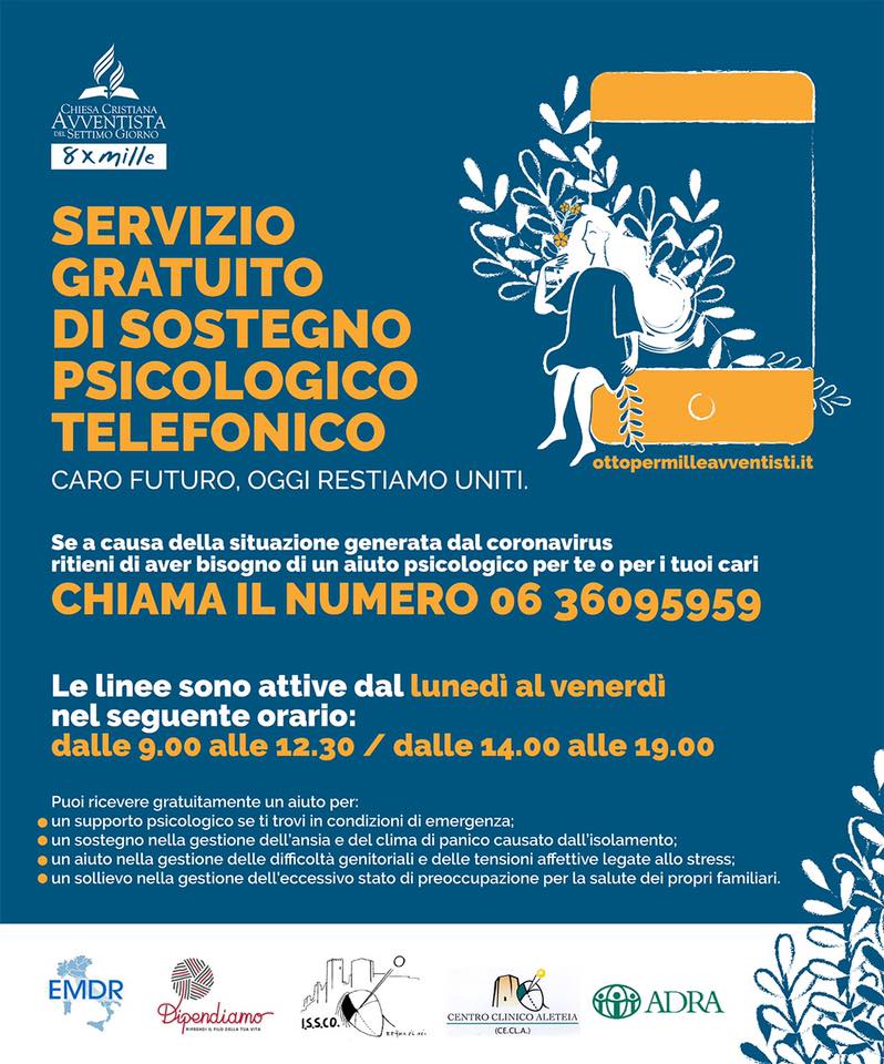 Con le colleghe del Centro DipendiAmo ho aderito al SERVIZIO GRATUITO DI SUPPORTO PSICOLOGICO TELEFONICO per aiutare i cittadini ad affrontare l’emergenza in atto causata dal COVID-19. Il numero 06/36095959 è attivo dal lunedì al venerdì dalle 9.00 alle 12.30, 14.00-19.00